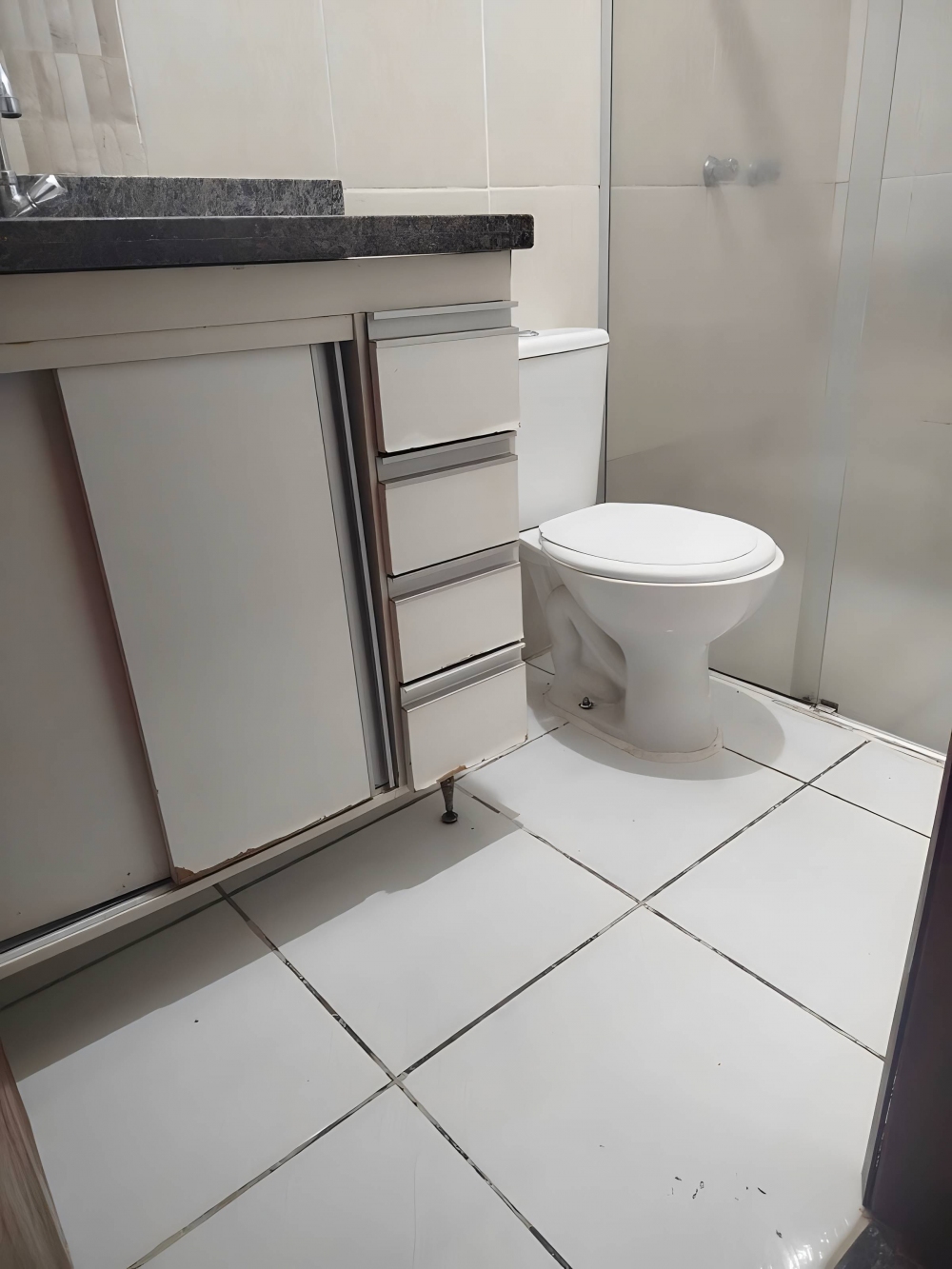 • Banheiro social com gabinete e box blindex