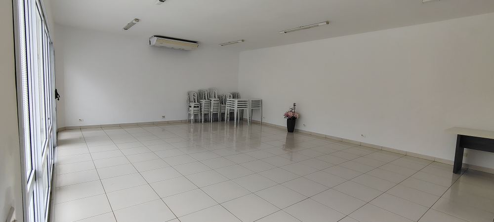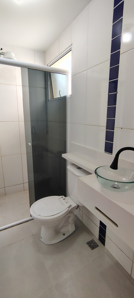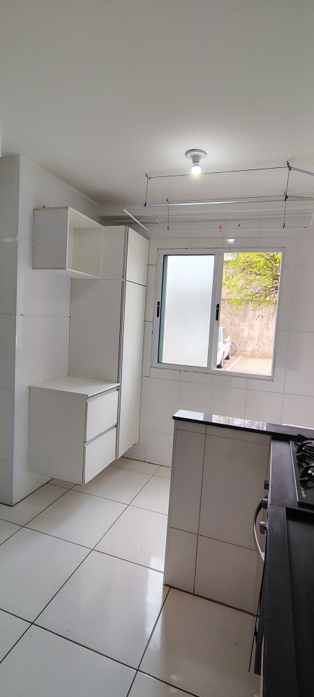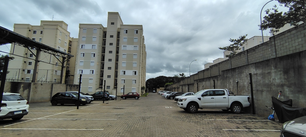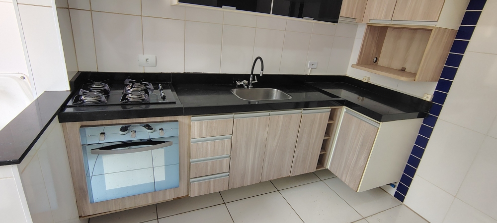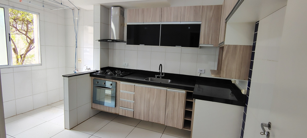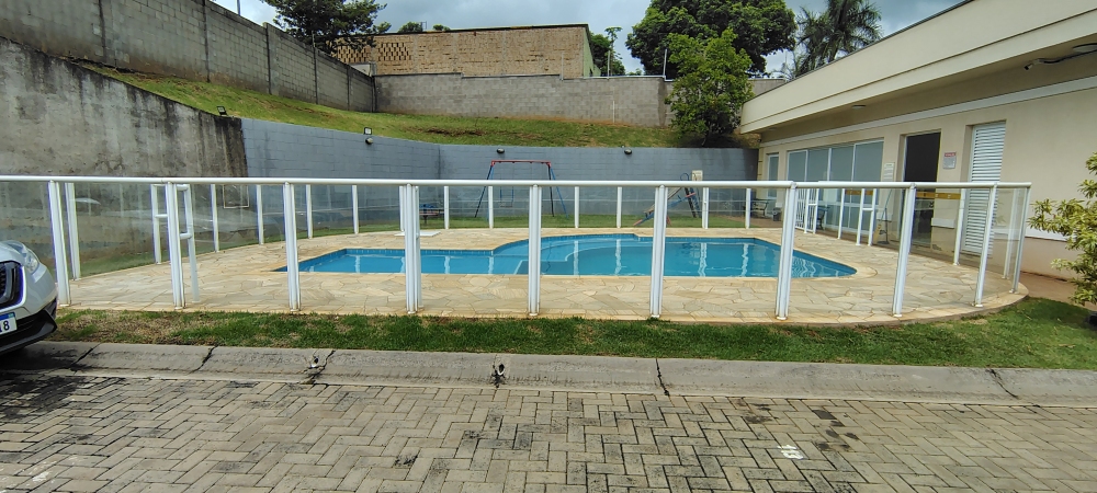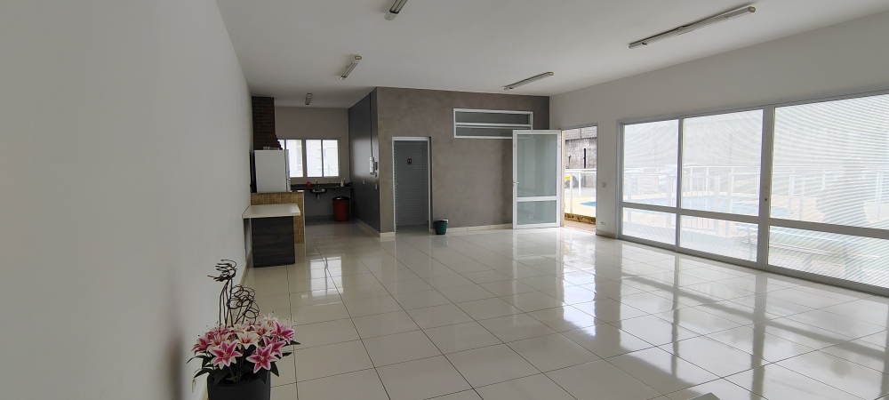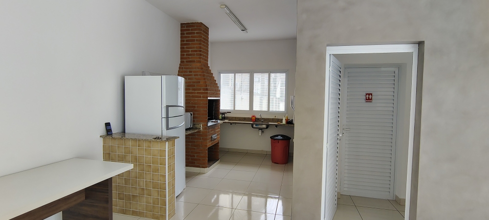 O condomínio oferece portaria presencial 24 horas, piscina, salão de festas com banheiros, cozinha gourmet com churrasqueira de tijolo à vista, geladeira e pia, além de playground e estacionamento. O imóvel possui direito a uma vaga de garagem descoberta.